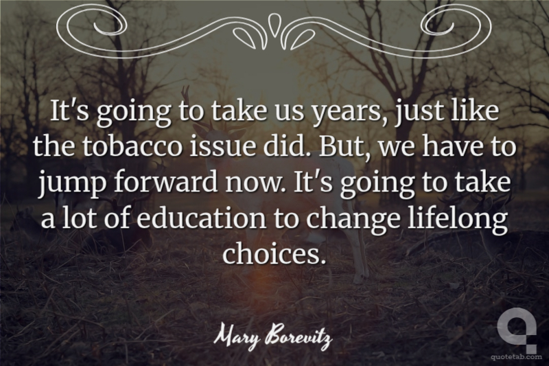 It's going to take us years, just like the tobacco issue did. But, we have to jump forward now. It's going to take a lot of education to change lifelong choices.
