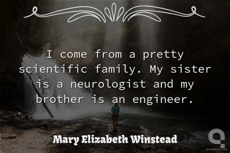 I come from a pretty scientific family. My sister is a neurologist and my brother is an engineer.