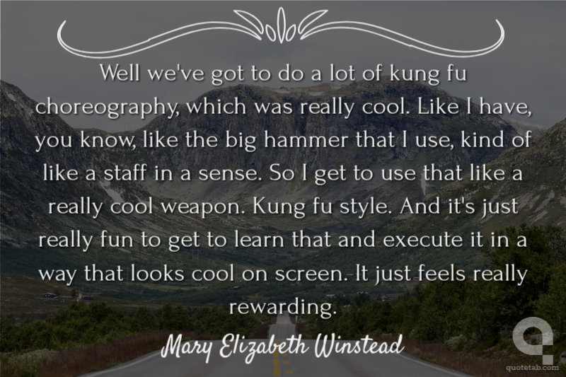 Well we've got to do a lot of kung fu choreography, which was really cool. Like I have, you know, like the big hammer that I use, kind of like a staff in a sense. So I get to use that like a really cool weapon. Kung fu style. And it's just really fun to get to learn that and execute it in a way that looks cool on screen. It just feels really rewarding.