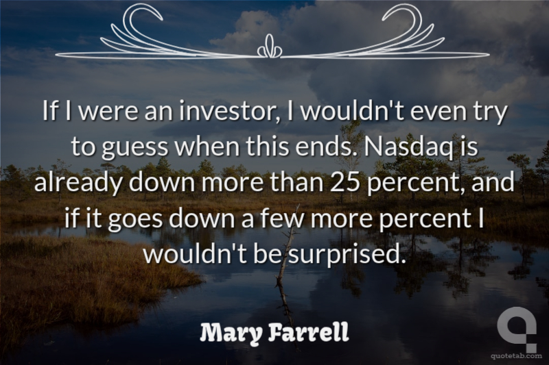 If I were an investor, I wouldn't even try to guess when this ends. Nasdaq is already down more than 25 percent, and if it goes down a few more percent I wouldn't be surprised.