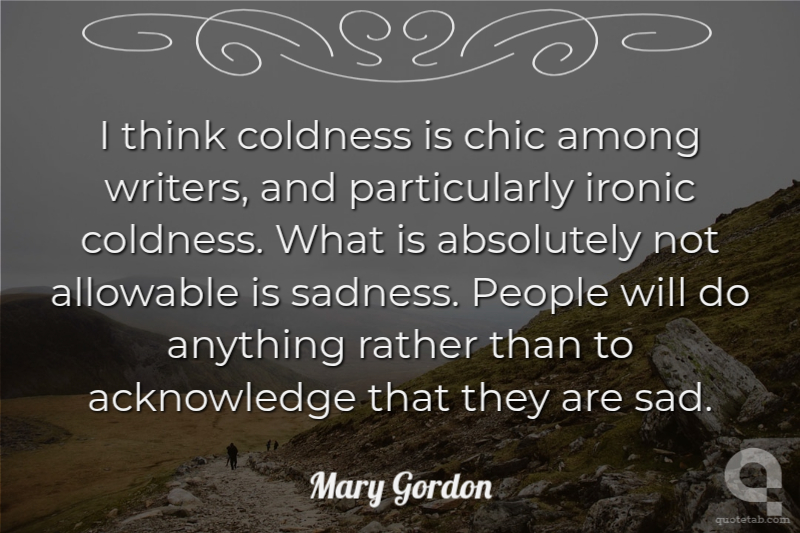I think coldness is chic among writers, and particularly ironic coldness. What is absolutely not allowable is sadness. People will do anything rather than to acknowledge that they are sad.