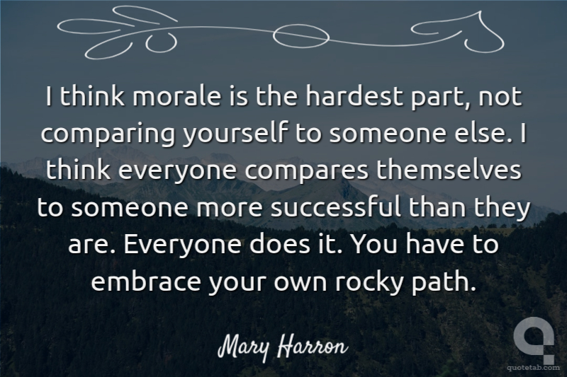 I think morale is the hardest part, not comparing yourself to someone else. I think everyone compares themselves to someone more successful than they are. Everyone does it. You have to embrace your own rocky path.