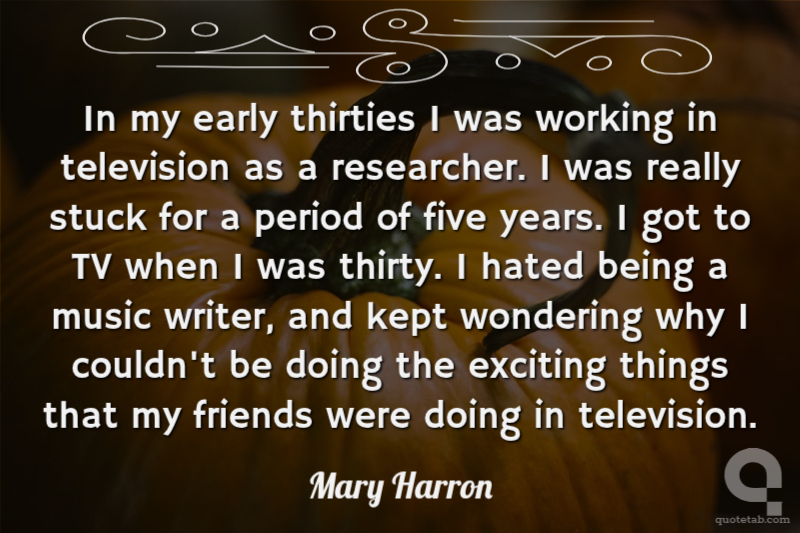 In my early thirties I was working in television as a researcher. I was really stuck for a period of five years. I got to TV when I was thirty. I hated being a music writer, and kept wondering why I couldn't be doing the exciting things that my friends were doing in television.