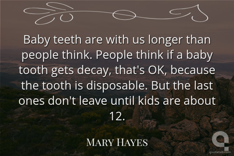 Baby teeth are with us longer than people think. People think if a baby tooth gets decay, that's OK, because the tooth is disposable. But the last ones don't leave until kids are about 12.