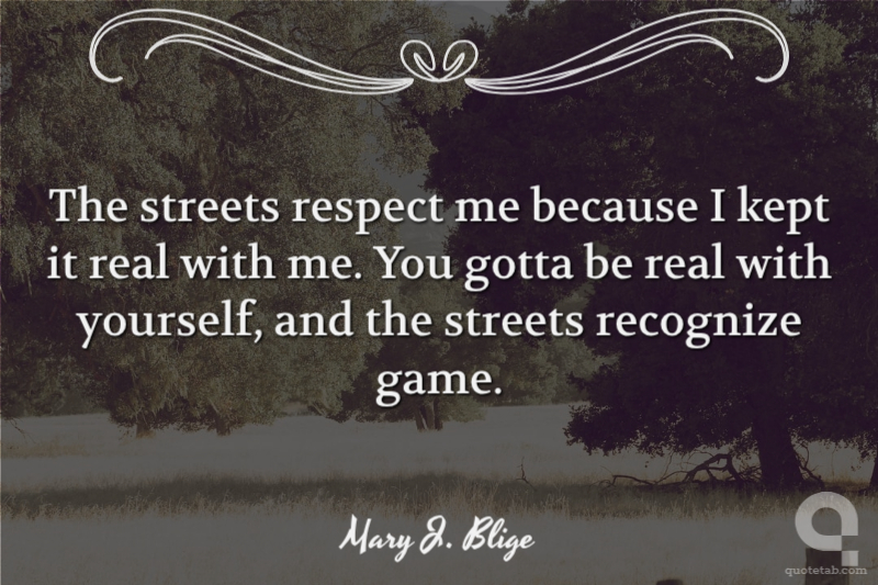 The streets respect me because I kept it real with me. You gotta be real with yourself, and the streets recognize game.