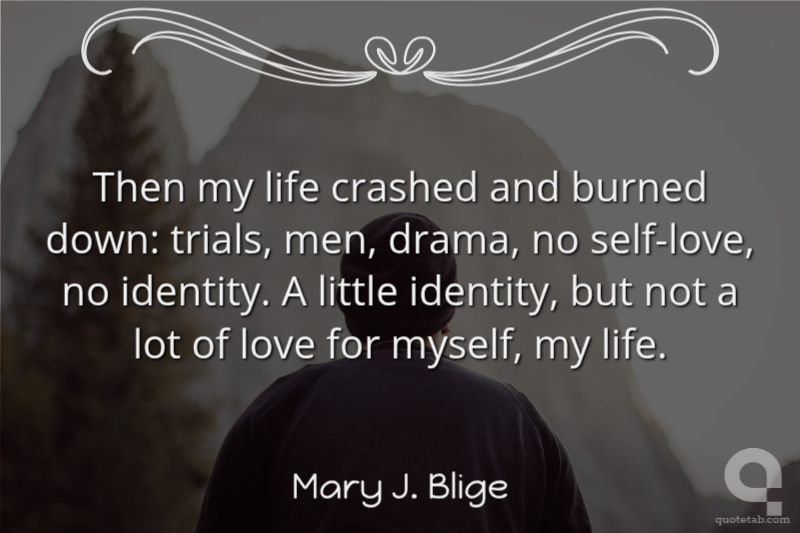 Then my life crashed and burned down: trials, men, drama, no self-love, no identity. A little identity, but not a lot of love for myself, my life.