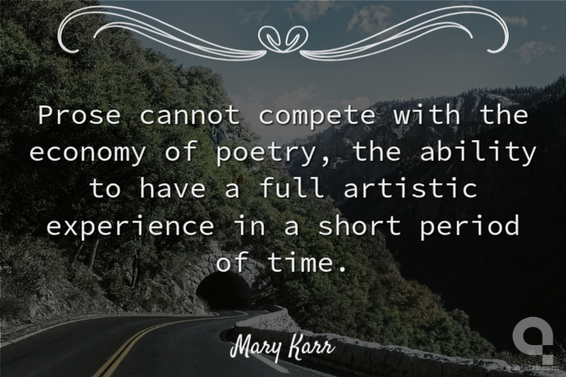 Prose cannot compete with the economy of poetry, the ability to have a full artistic experience in a short period of time.