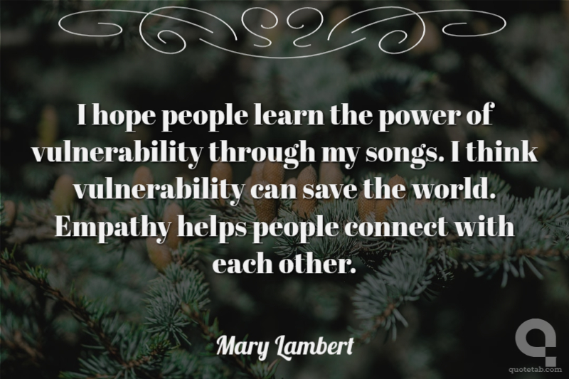 I hope people learn the power of vulnerability through my songs. I think vulnerability can save the world. Empathy helps people connect with each other.