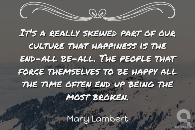 It's a really skewed part of our culture that happiness is the end-all be-all. The people that force themselves to be happy all the time often end up being the most broken.