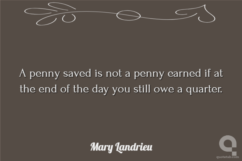 A penny saved is not a penny earned if at the end of the day you still owe a quarter.