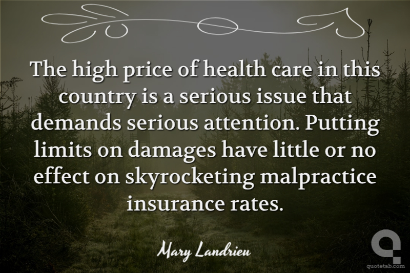 The high price of health care in this country is a serious issue that demands serious attention. Putting limits on damages have little or no effect on skyrocketing malpractice insurance rates.