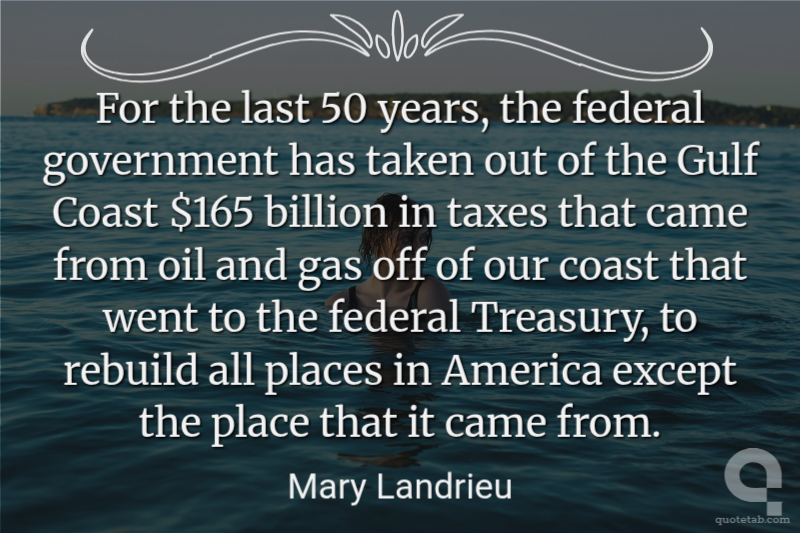For the last 50 years, the federal government has taken out of the Gulf Coast $165 billion in taxes that came from oil and gas off of our coast that went to the federal Treasury, to rebuild all places in America except the place that it came from.