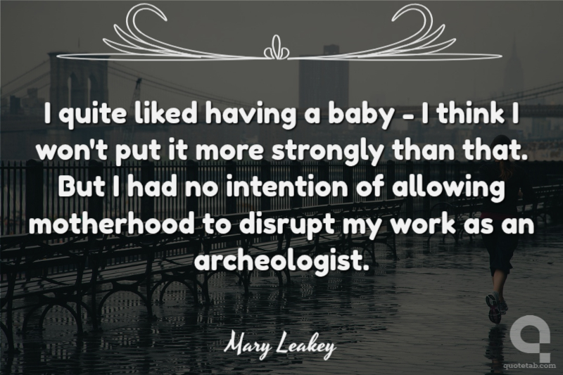 I quite liked having a baby - I think I won't put it more strongly than that. But I had no intention of allowing motherhood to disrupt my work as an archeologist.