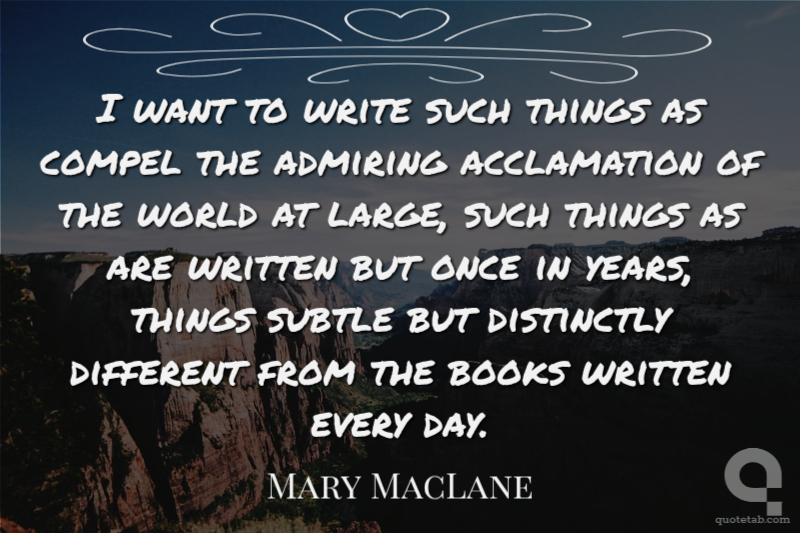 I want to write such things as compel the admiring acclamation of the world at large, such things as are written but once in years, things subtle but distinctly different from the books written every day.