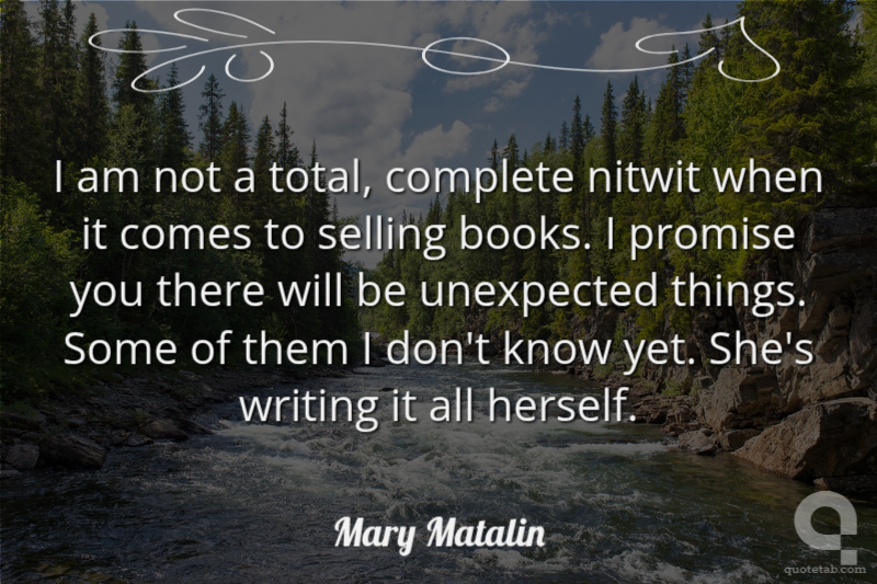 I am not a total, complete nitwit when it comes to selling books. I promise you there will be unexpected things. Some of them I don't know yet. She's writing it all herself.