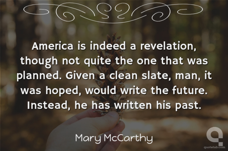 America is indeed a revelation, though not quite the one that was planned. Given a clean slate, man, it was hoped, would write the future. Instead, he has written his past.