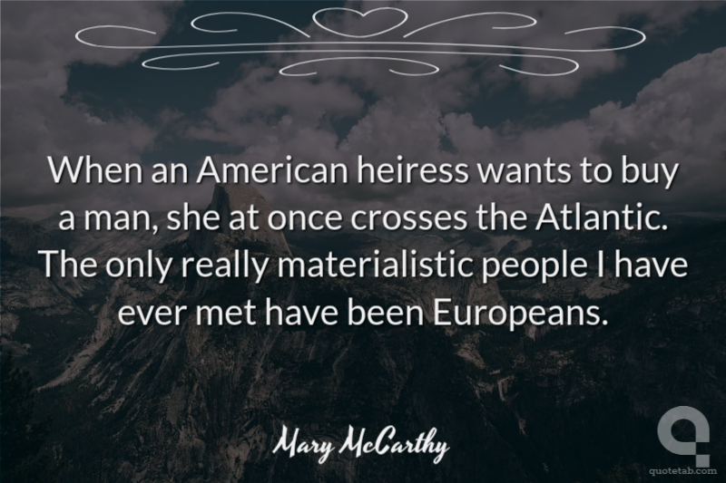 When an American heiress wants to buy a man, she at once crosses the Atlantic. The only really materialistic people I have ever met have been Europeans.