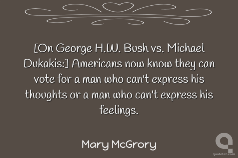 [On George H.W. Bush vs. Michael Dukakis:] Americans now know they can vote for a man who can't express his thoughts or a man who can't express his feelings.