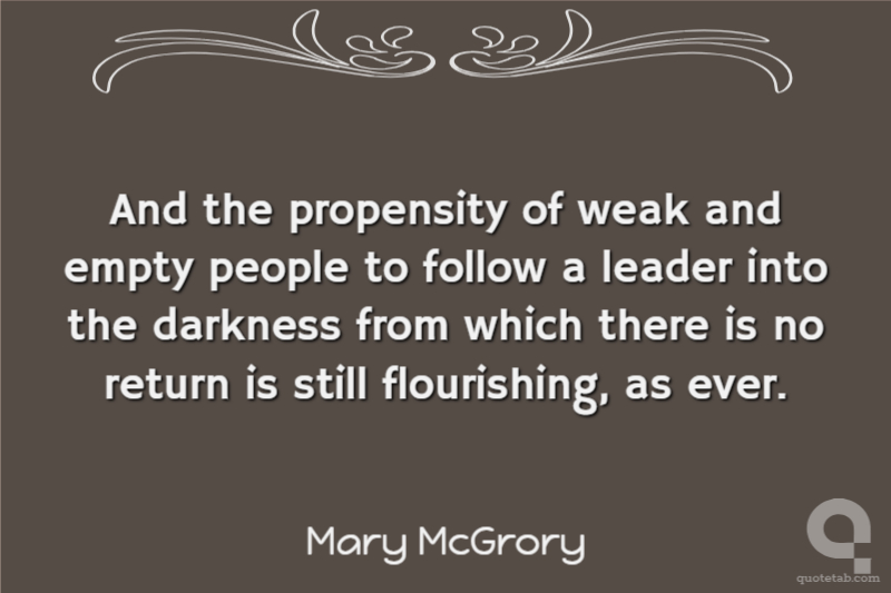 And the propensity of weak and empty people to follow a leader into the darkness from which there is no return is still flourishing, as ever.