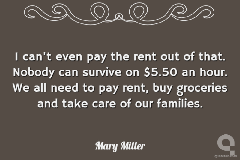 I can't even pay the rent out of that. Nobody can survive on $5.50 an hour. We all need to pay rent, buy groceries and take care of our families.
