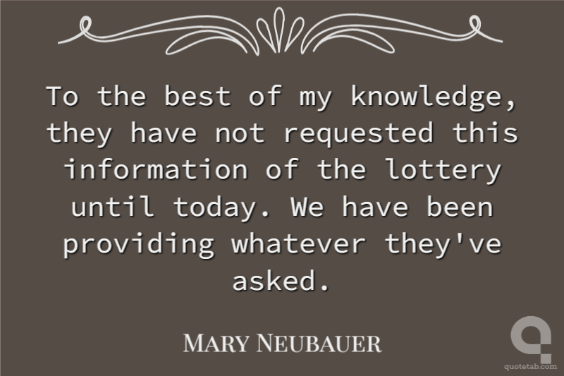 To the best of my knowledge, they have not requested this information of the lottery until today. We have been providing whatever they've asked.