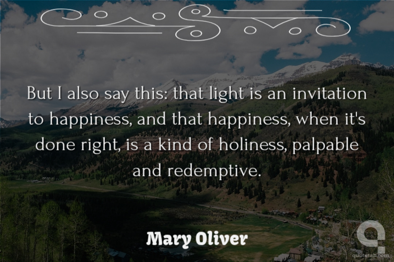 But I also say this: that light is an invitation to happiness, and that happiness, when it's done right, is a kind of holiness, palpable and redemptive.