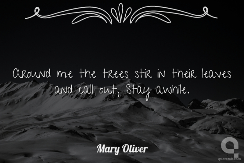 Around me the trees stir in their leaves and call out, Stay awhile.