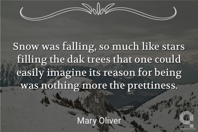 Snow was falling, so much like stars filling the dak trees that one could easily imagine its reason for being was nothing more the prettiness.