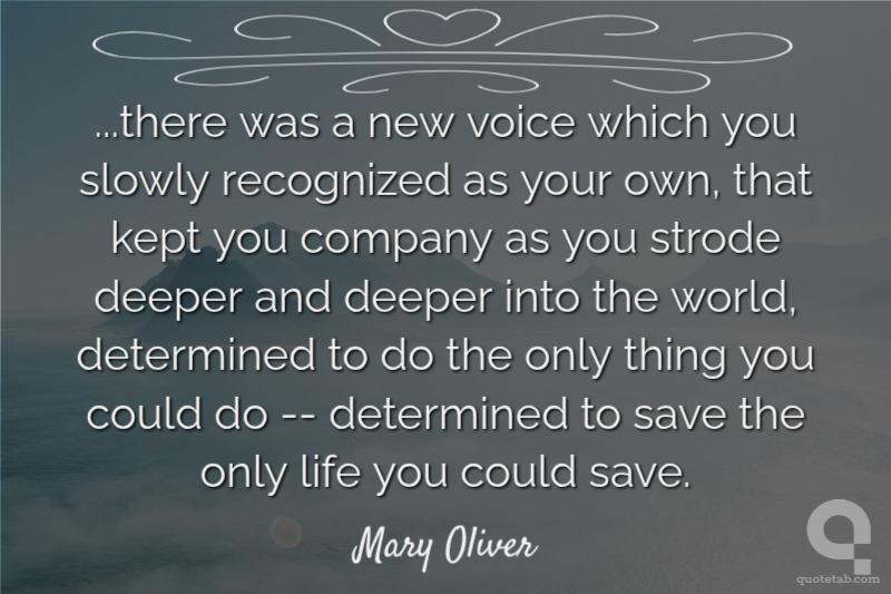 ...there was a new voice which you slowly recognized as your own, that kept you company as you strode deeper and deeper into the world, determined to do the only thing you could do -- determined to save the only life you could save.