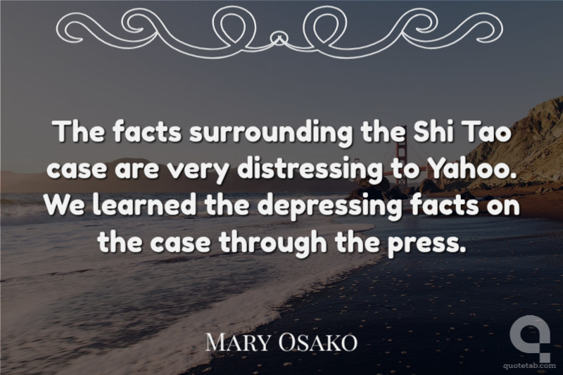 The facts surrounding the Shi Tao case are very distressing to Yahoo. We learned the depressing facts on the case through the press.