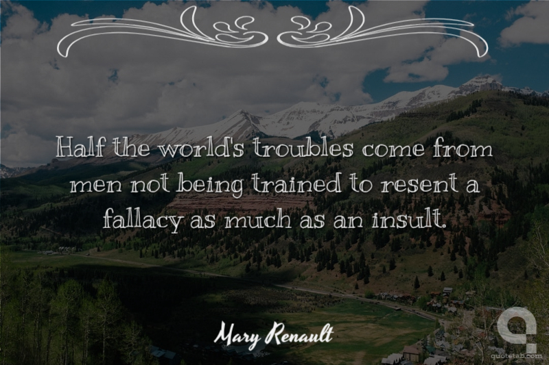 Half the world's troubles come from men not being trained to resent a fallacy as much as an insult.