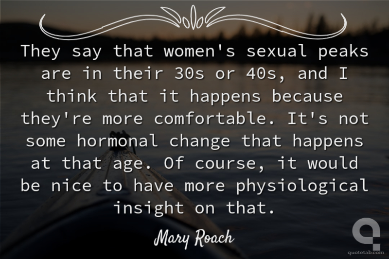 They say that women's sexual peaks are in their 30s or 40s, and I think that it happens because they're more comfortable. It's not some hormonal change that happens at that age. Of course, it would be nice to have more physiological insight on that.