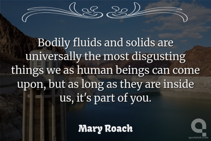 Bodily fluids and solids are universally the most disgusting things we as human beings can come upon, but as long as they are inside us, it's part of you.