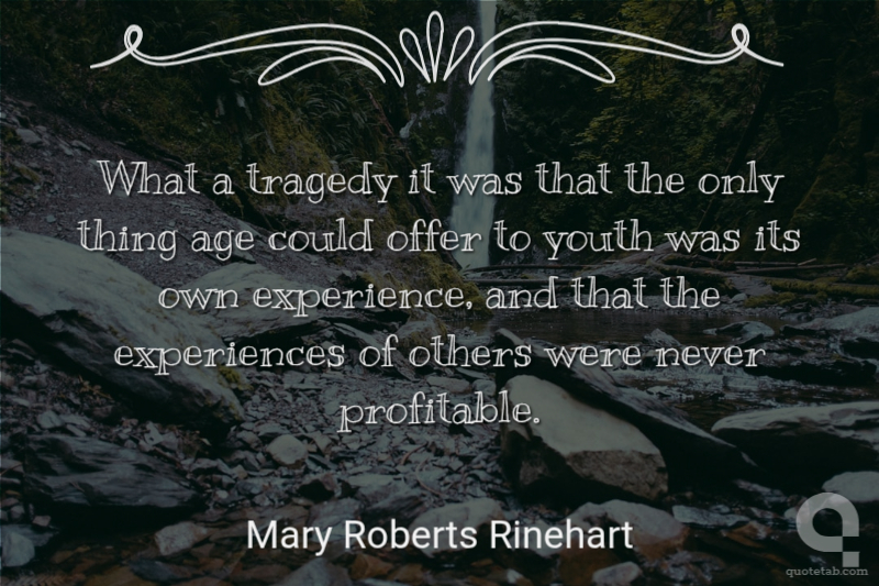 What a tragedy it was that the only thing age could offer to youth was its own experience, and that the experiences of others were never profitable.