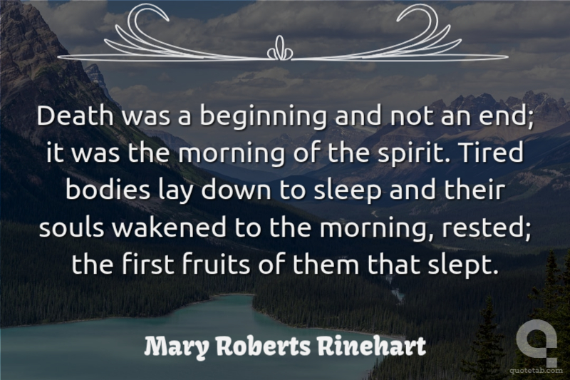 Death was a beginning and not an end; it was the morning of the spirit. Tired bodies lay down to sleep and their souls wakened to the morning, rested; the first fruits of them that slept.