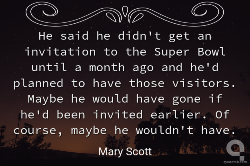 He said he didn't get an invitation to the Super Bowl until a month ago and he'd planned to have those visitors. Maybe he would have gone if he'd been invited earlier. Of course, maybe he wouldn't have.