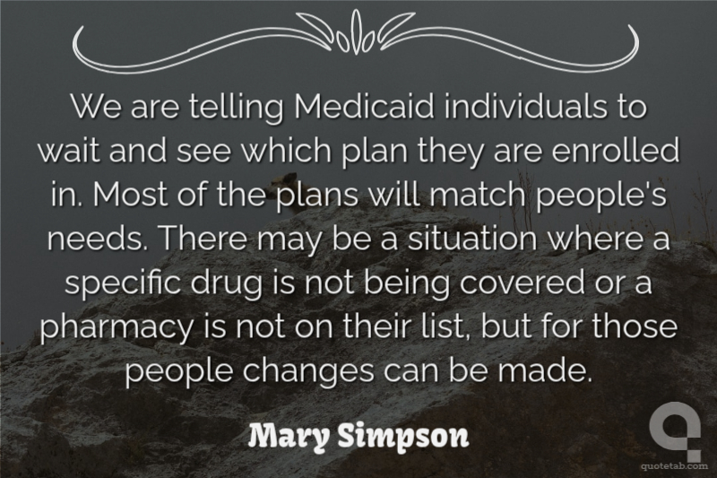 We are telling Medicaid individuals to wait and see which plan they are enrolled in. Most of the plans will match people's needs. There may be a situation where a specific drug is not being covered or a pharmacy is not on their list, but for those people changes can be made.