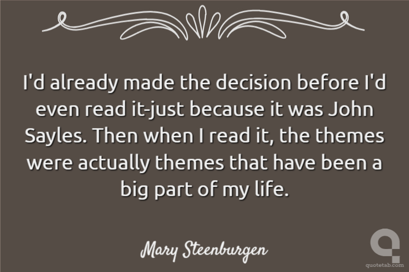 I'd already made the decision before I'd even read it-just because it was John Sayles. Then when I read it, the themes were actually themes that have been a big part of my life.
