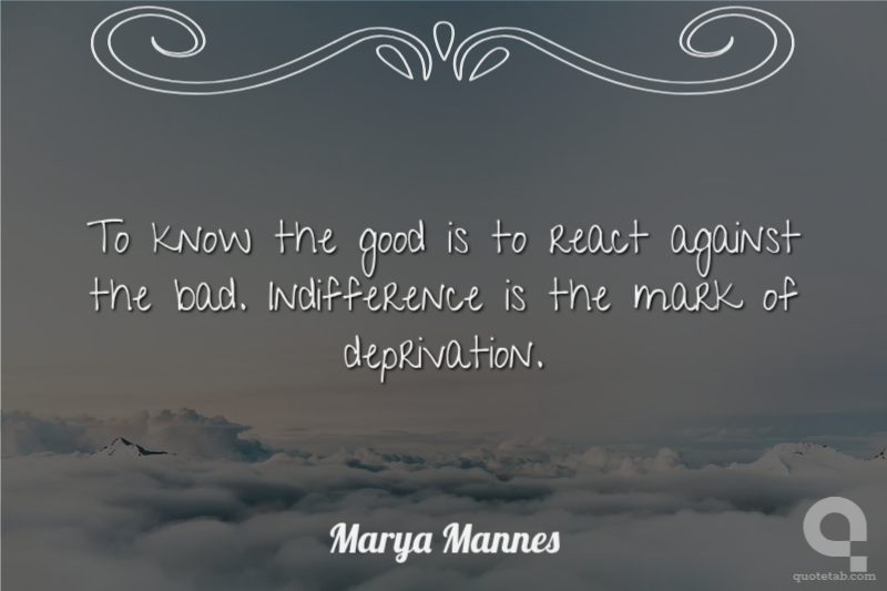 To know the good is to react against the bad. Indifference is the mark of deprivation.