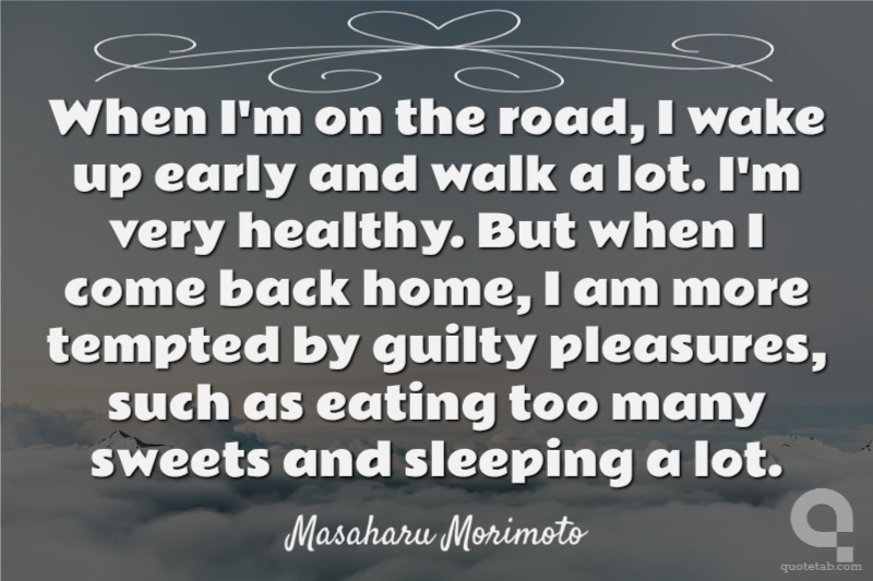 When I'm on the road, I wake up early and walk a lot. I'm very healthy. But when I come back home, I am more tempted by guilty pleasures, such as eating too many sweets and sleeping a lot.