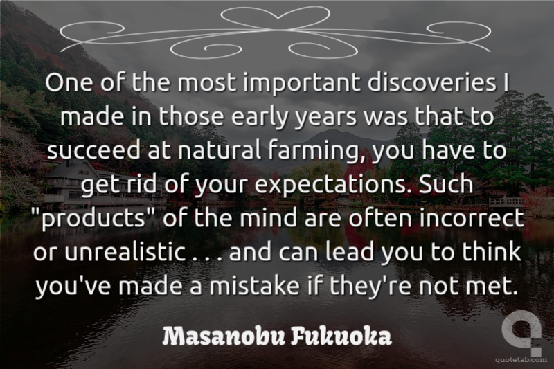 One of the most important discoveries I made in those early years was that to succeed at natural farming, you have to get rid of your expectations. Such "products" of the mind are often incorrect or unrealistic . . . and can lead you to think you've made a mistake if they're not met.