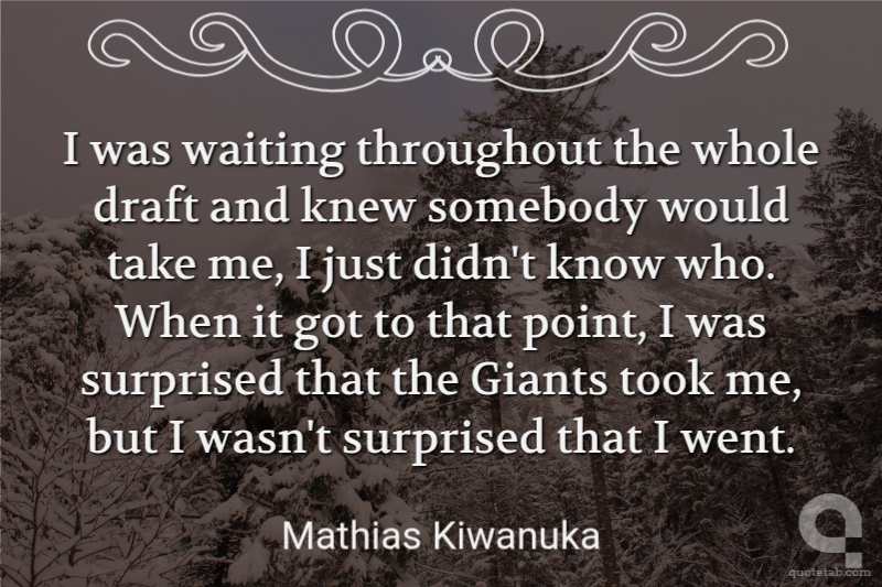 I was waiting throughout the whole draft and knew somebody would take me, I just didn't know who. When it got to that point, I was surprised that the Giants took me, but I wasn't surprised that I went.