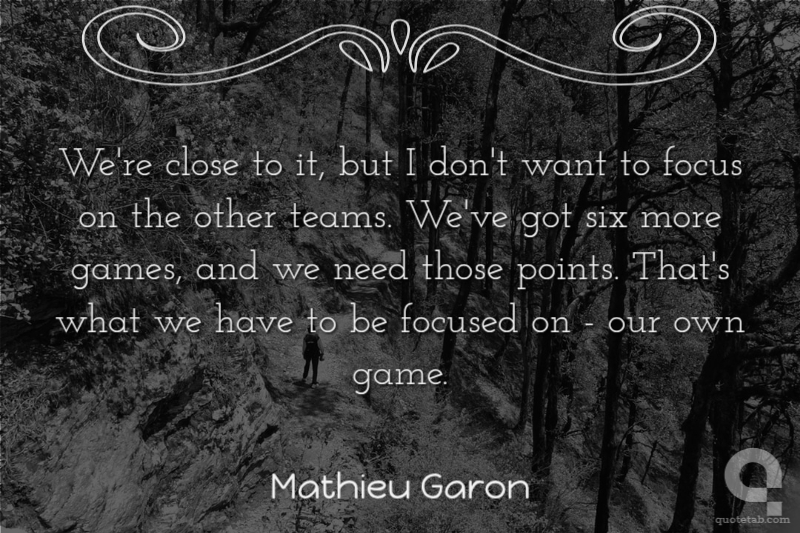 We're close to it, but I don't want to focus on the other teams. We've got six more games, and we need those points. That's what we have to be focused on - our own game.