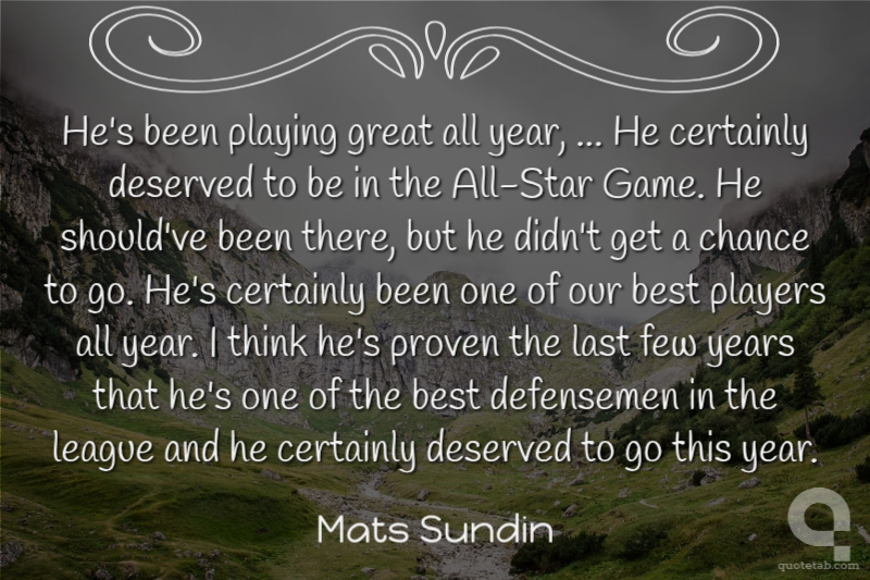 He's been playing great all year, ... He certainly deserved to be in the All-Star Game. He should've been there, but he didn't get a chance to go. He's certainly been one of our best players all year. I think he's proven the last few years that he's one of the best defensemen in the league and he certainly deserved to go this year.