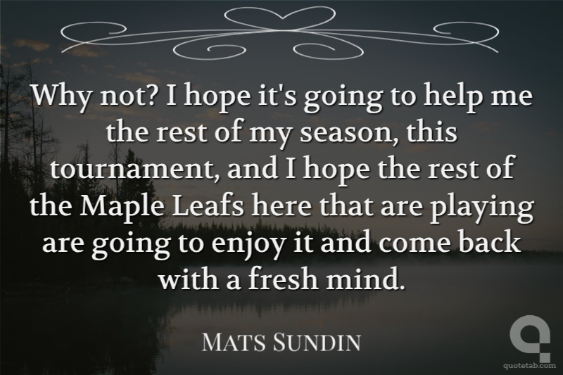 Why not? I hope it's going to help me the rest of my season, this tournament, and I hope the rest of the Maple Leafs here that are playing are going to enjoy it and come back with a fresh mind.