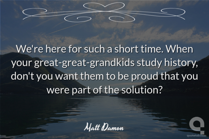 We're here for such a short time. When your great-great-grandkids study history, don't you want them to be proud that you were part of the solution?