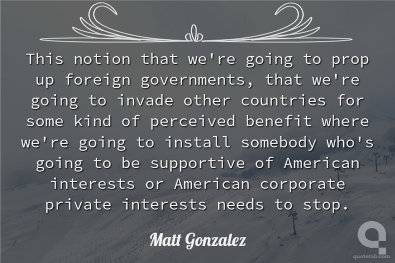 This notion that we're going to prop up foreign governments, that we're going to invade other countries for some kind of perceived benefit where we're going to install somebody who's going to be supportive of American interests or American corporate private interests needs to stop.