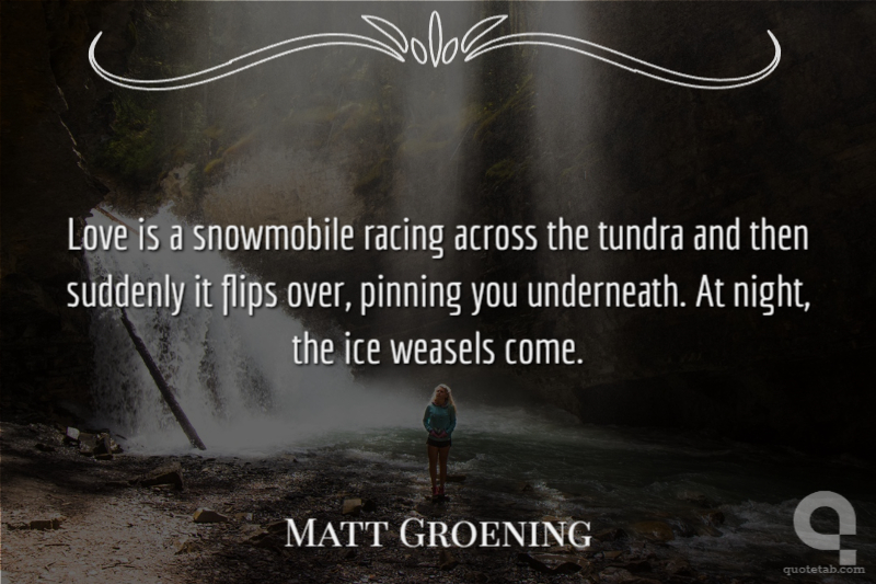 Love is a snowmobile racing across the tundra and then suddenly it flips over, pinning you underneath. At night, the ice weasels come.