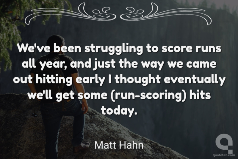 We've been struggling to score runs all year, and just the way we came out hitting early I thought eventually we'll get some (run-scoring) hits today.