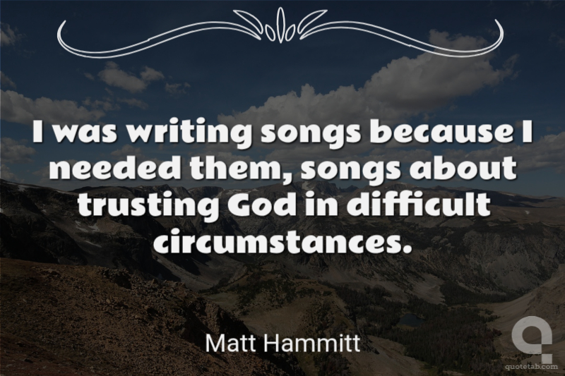 I was writing songs because I needed them, songs about trusting God in difficult circumstances.